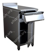 Закрытый нейтральный модуль Кобор N7-8EB предназначен для использования в составе тепловой линии в качестве дополнительного места для раскатки теста, обработки ингредиентов для приготовления блюд, установки оборудования и приборов. Модуль оснащен выдвижным ящиком, сплошной полкой, распашной дверцей и регулируемыми по высоте ножками. Корпус выполнен из нержавеющей стали AISI 430, каркас - из профильной трубы 40х40 мм.