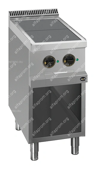 Электрическая плита Apach APRE-47QP 700-й серии предназначена для приготовления различных блюд из мяса, птицы, рыбы и овощей в наплитной посуде на предприятиях общественного питания и торговли. Модель оснащена электромеханической панелью управления, быстро нагревающимися конфорками, гидроизолированной прессованной поверхностью, выдвижным лотком для сбора остатков пищи, масла и жира и открытой подставкой с регулируемыми по высоте ножками. Корпус, рабочая поверхность, панель управления и вытяжная решетка выполнены из нержавеющей стали AISI 304, боковые и задняя панели - из нержавеющей …