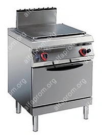 Плита газовая Angelo Po 1G1TP0G со сплошной рабочей поверхностью, под которой находится газовая горелка с максимальной мощностью 10 кВт с пьезоэлектрическим розжигом и термостатическим контролем температуры. Газовый статический духовой шкаф сделан под противни GN 2/1 (противни в комплект не входят). Плита является функциональным модулем кухонной линии GAMMA 700.