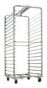 Тележка-шпилька Bassanina ROTOR 68 18 к используется совместно с ротационными печами с крюком для размещения и загрузки тестовых заготовок. Аксессуар поставляется в разборном виде. Конструкция выполнена из трубчатого профиля 25х25 мм из нержавеющей стали AISI 304, поворотные колеса с двойным комплектом шариков - из термостойкого полимера, с втулкой из нержавеющей стали и муфтой из тефлона.